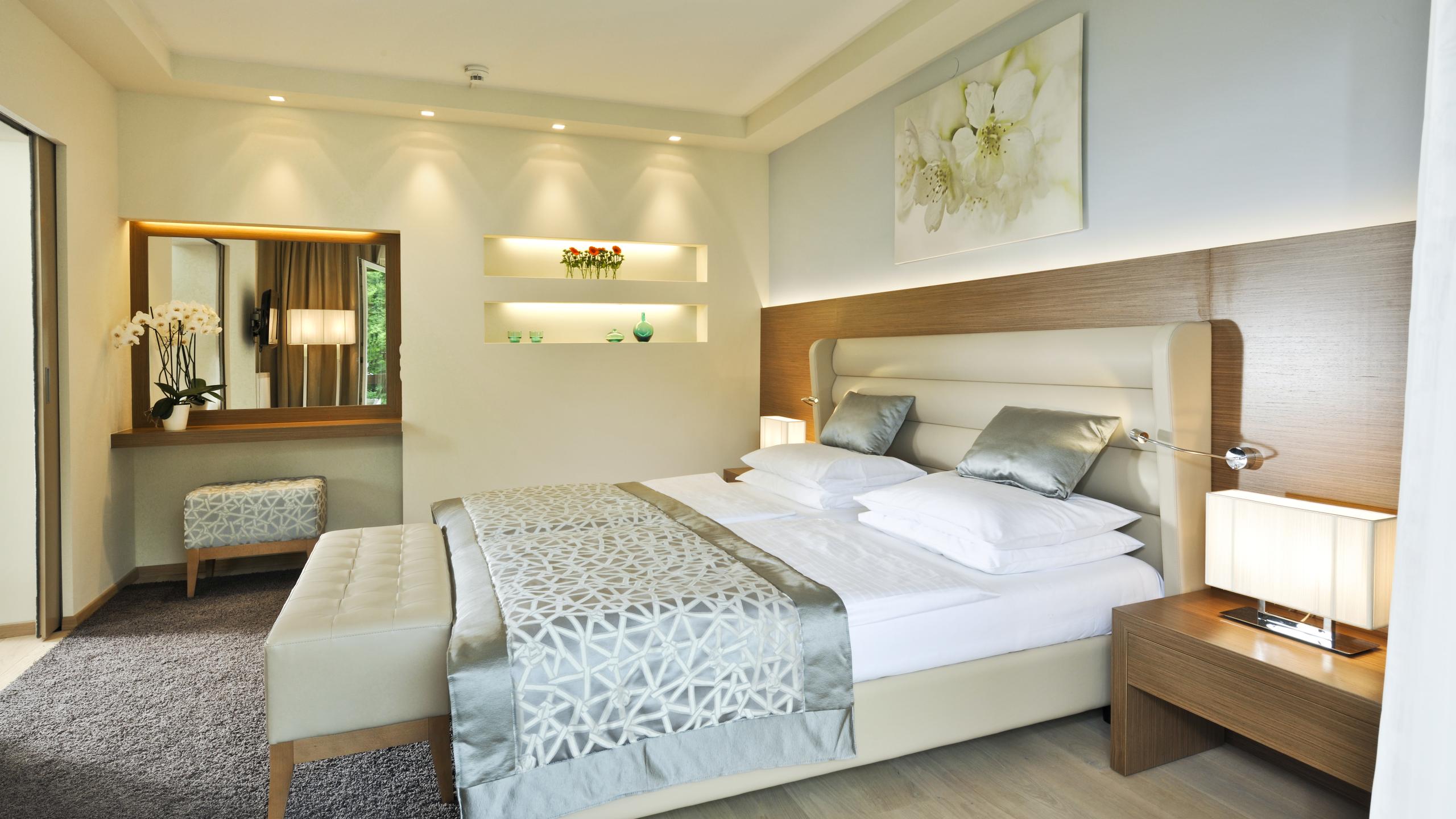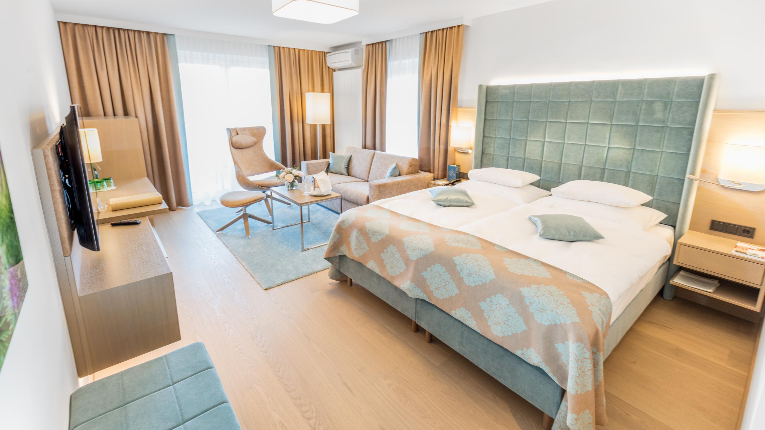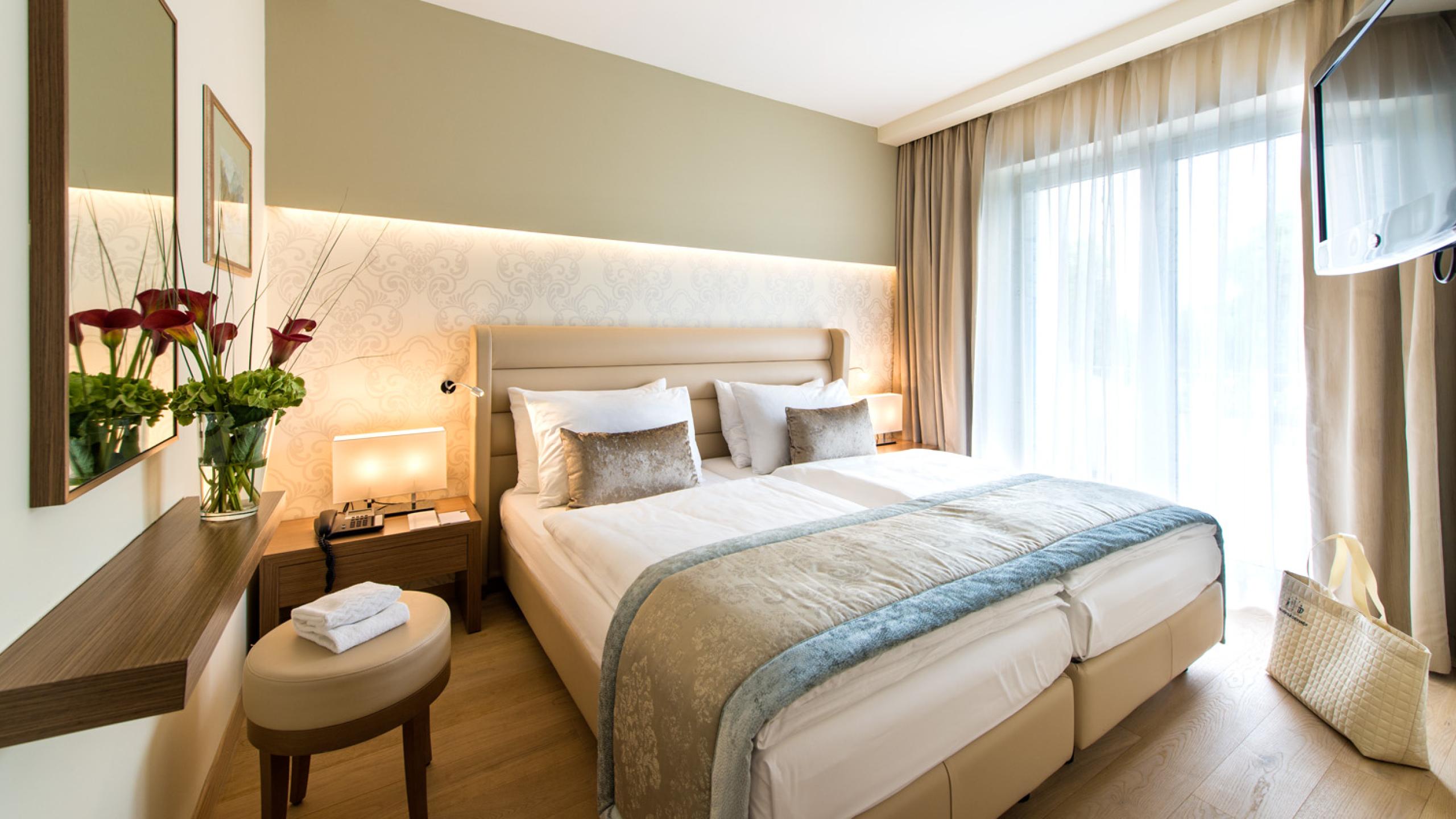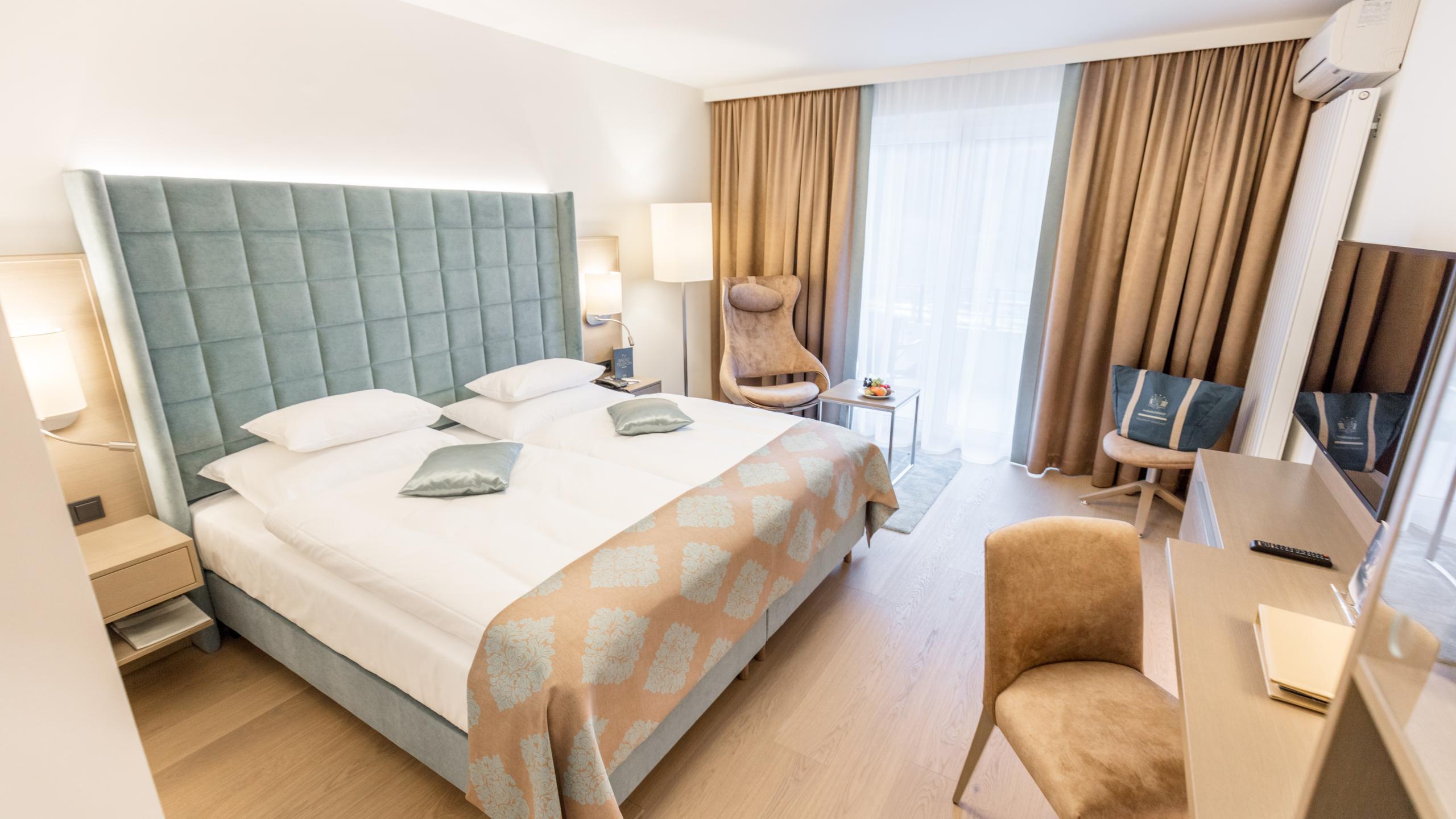 The rooms and suites in our hotel in Villach captivate with brightness, size and a marvellous panorama of the Warmbad nature park. The view of green countryside follows you every moment you spend in your room or suite, and creates a wonderful feeling of peace and relaxation.