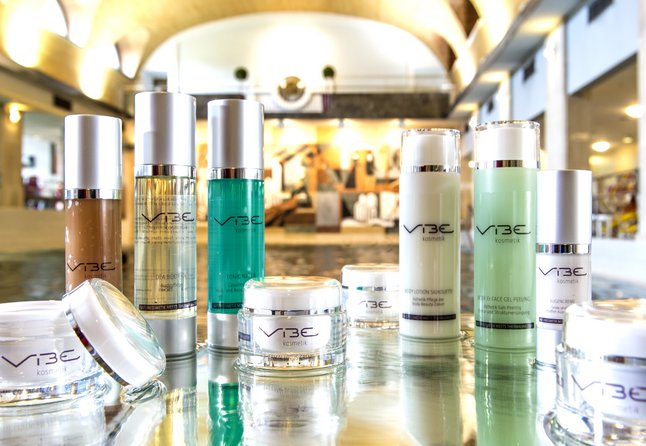 Für die exklusive VIBE NATURKOSMETIK wurde eine wertvolle Wirkstoff-Rezeptur aus Thermalwasser, Meeresalgen, Traubenkern-Extrakt, kostbaren Ölen, heilsamen Kräutern und modernen Anti-Aging-Zellingredienzien kombiniert. Lassen Sie Ihre Schönheit wieder erstrahlen und schöpfen Sie aus den kostbaren Quellen hochwertiger Pflege, Vitalität und Entspannung für den ganzen Körper.